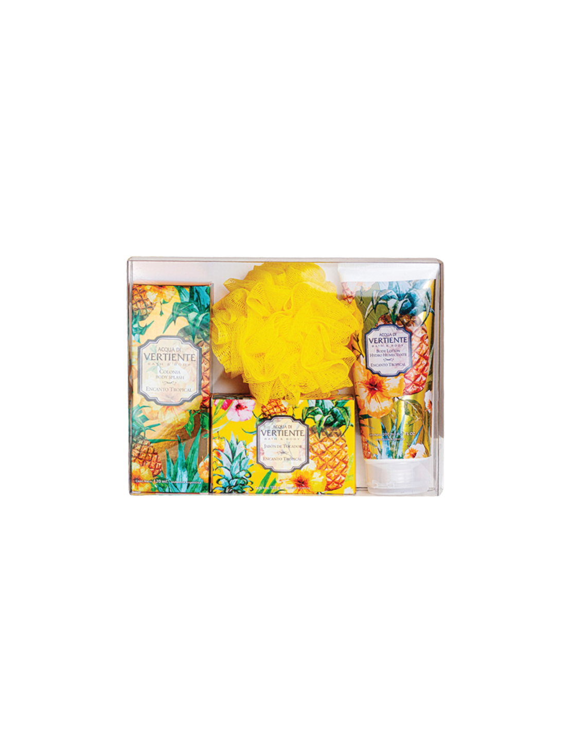 Aqua Di Vertiente Encanto Tropical 200ml + Jabón + Body Splash 120ml + Esponja